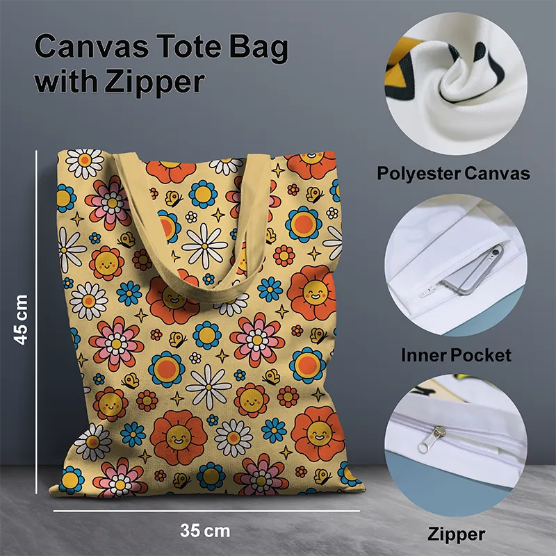 Cute Colorful Floral Pattern Canvas Tote Bag with Zipper 12 [FREEBIE Scrunchie]