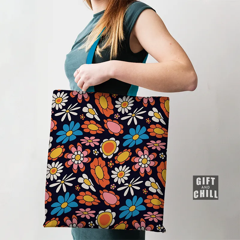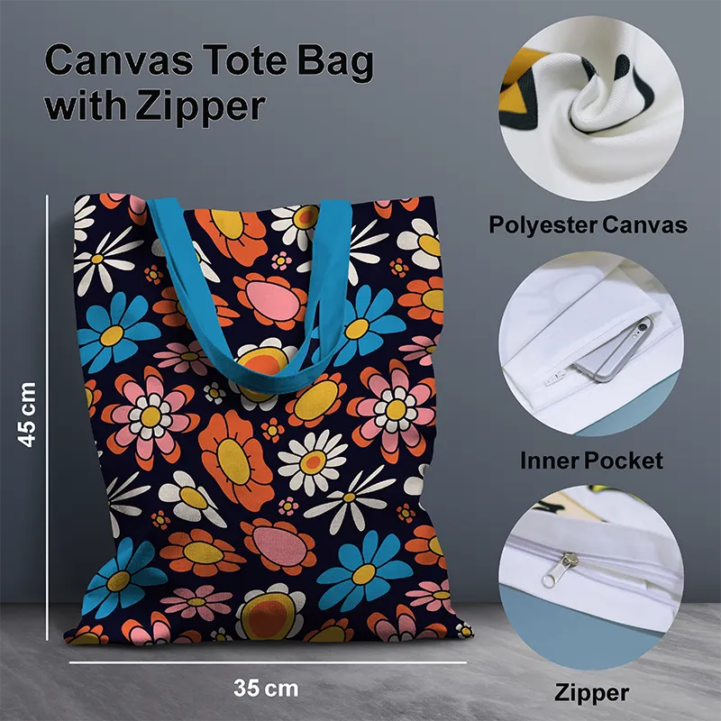 Colorful Floral Pattern Canvas Tote Bag with Zipper 13 [FREEBIE Scrunchie]