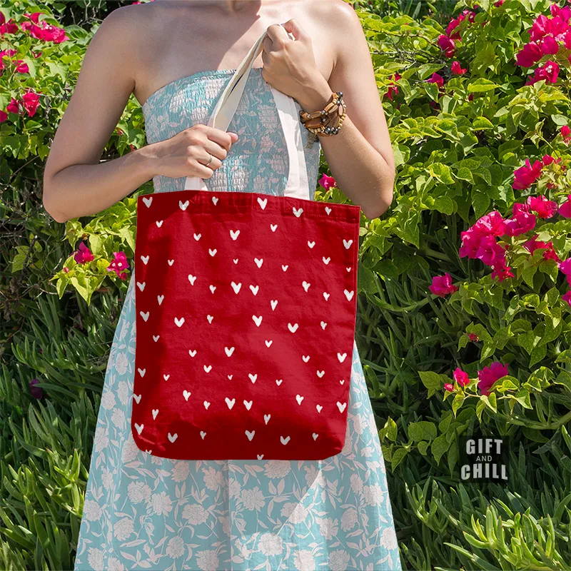 Beautiful Heart Pattern Red Canvas Tote Bag with Zipper 62 [FREEBIE Scrunchie]